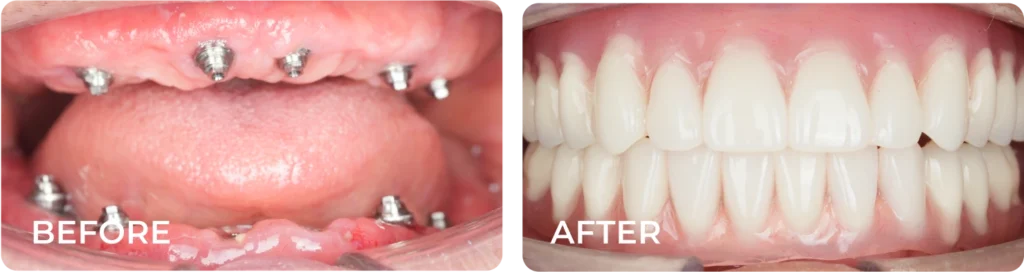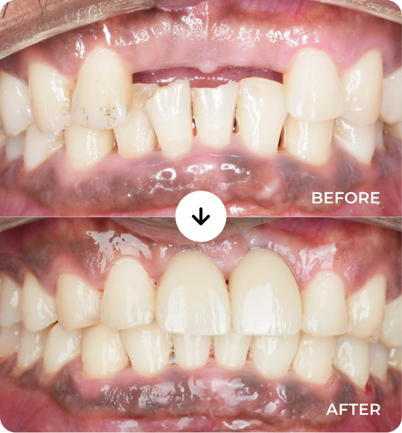 ทันตแพทย์จะใส่ครอบฟันที่มีรูปร่างและสี เหมือนกับฟันธรรมชาติ โดยวัสดุครอบฟัน ขึ้นอยู่กับคนไข้เลือกใช้เช่น โลหะ / เซรามิก / เซรามิกเซอร์โคเนีย เป็นต้น